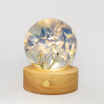 Lámpara de luz de bola de cristal de resina epoxi incrustada de flores de resina para decoración del hogar, regalo artesanal de resina, regalo de Navidad